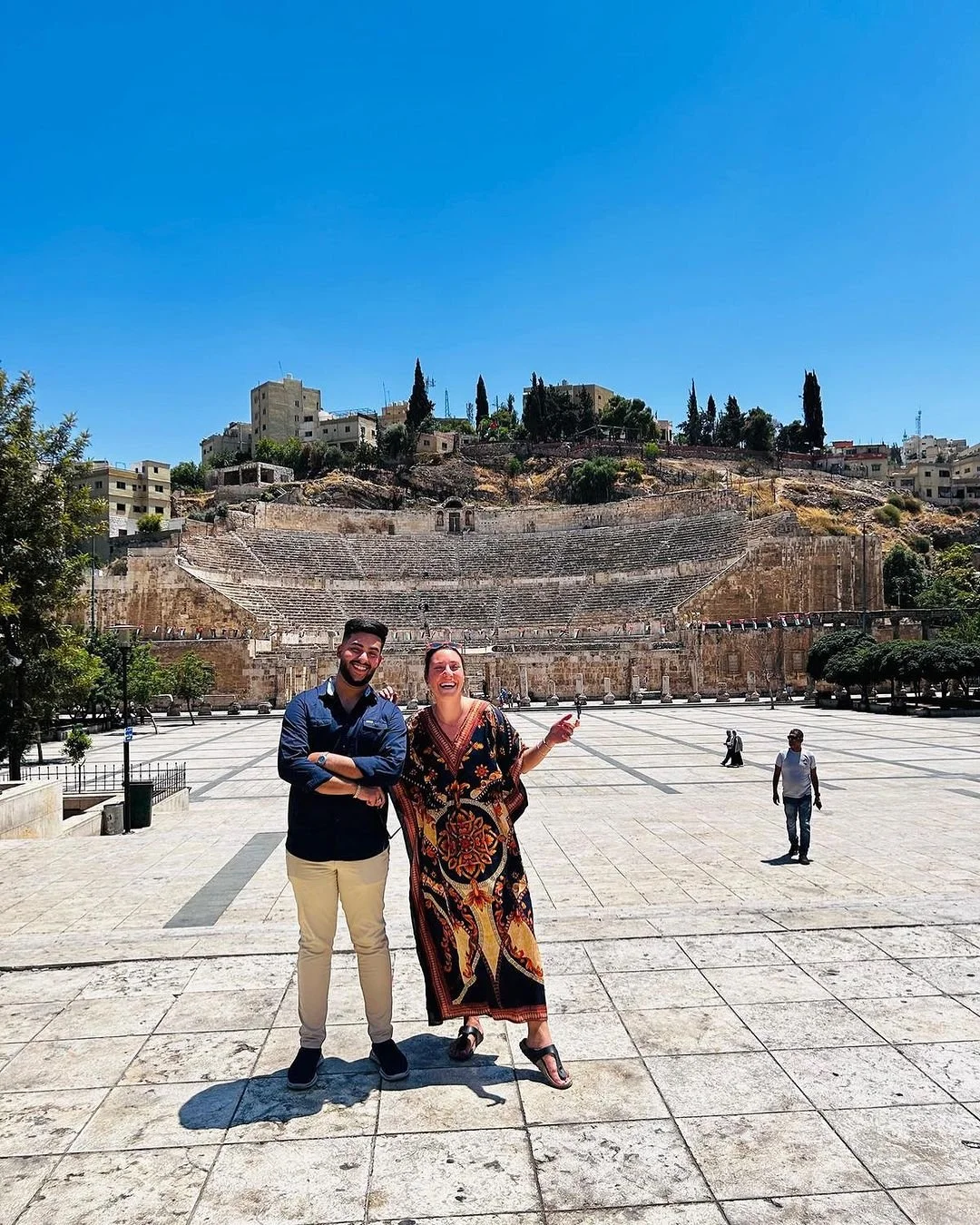 Here I am meeting another traveler who was also visiting the Roman Theatre in Amman, Jordan. This guy had traveled over from India and he asked to be in a photo with ME… It’s something I had experienced before while I was staying in India, so I didn’t question it and instead responded, “Only if I can have one too!” haha.